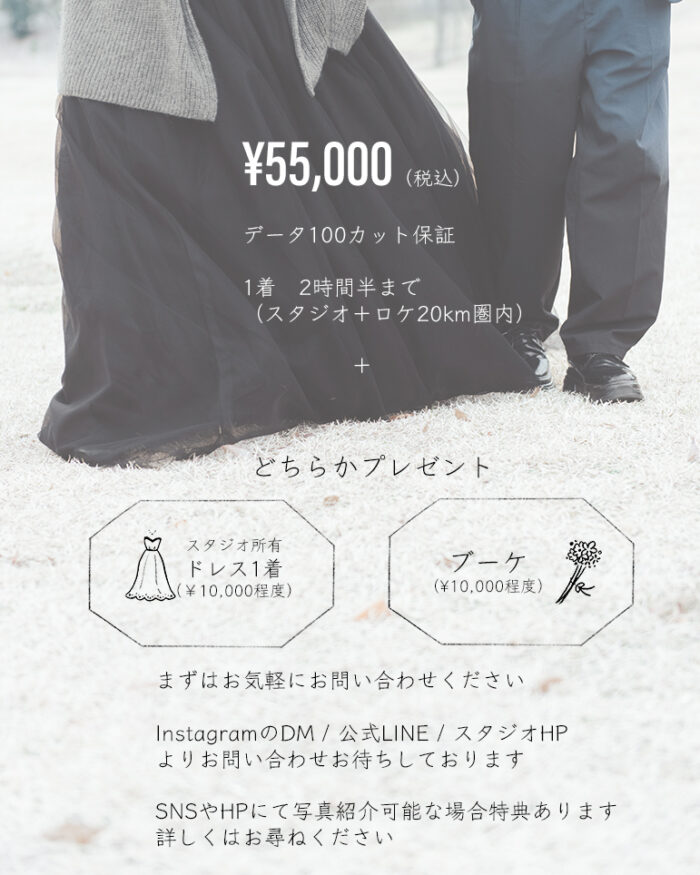 撮影料 ¥55,000(税込) (土日+¥5,500)